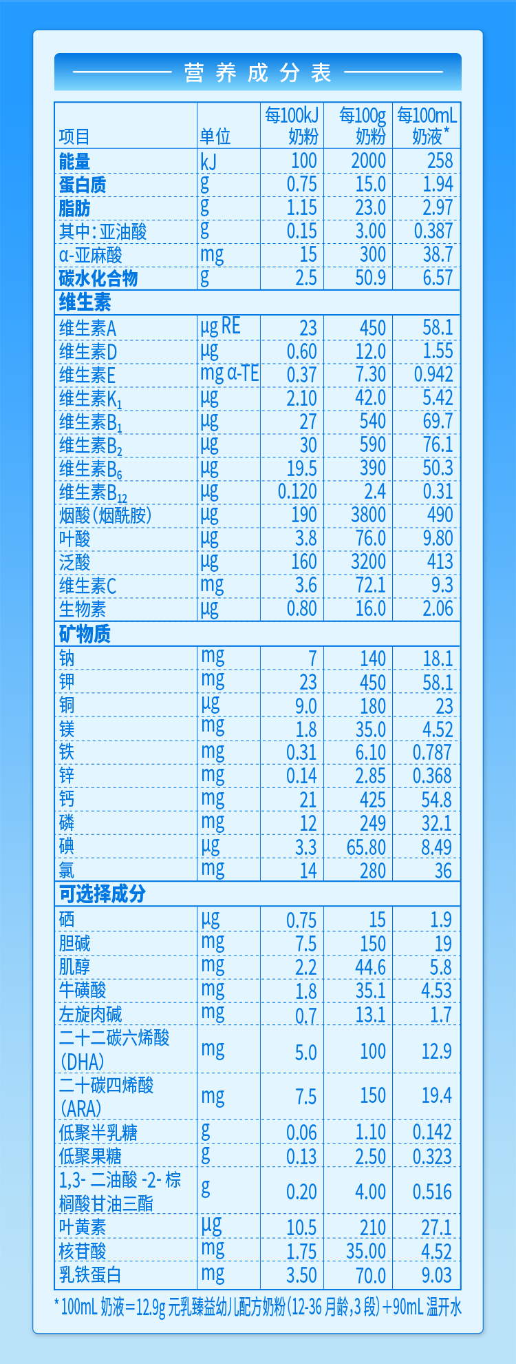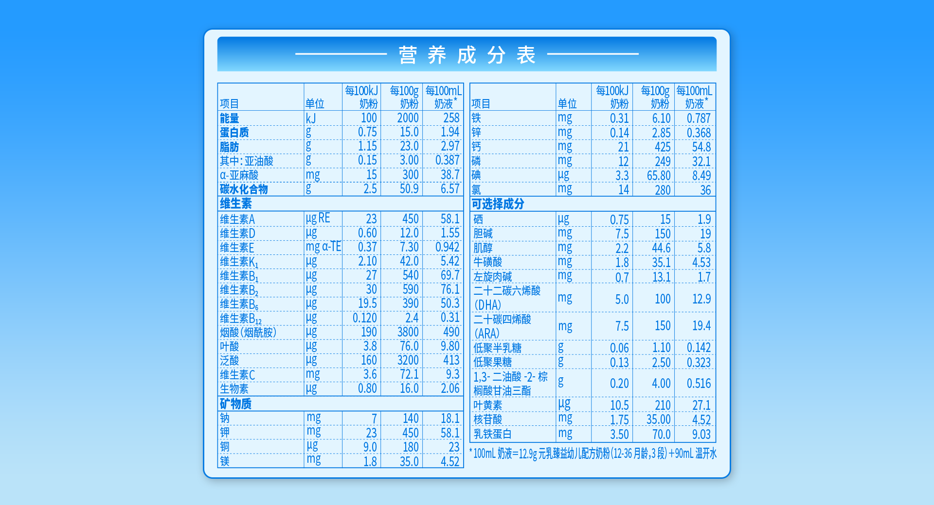 營(yíng)養(yǎng)成分表