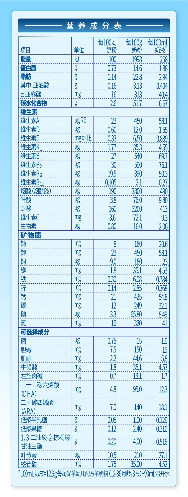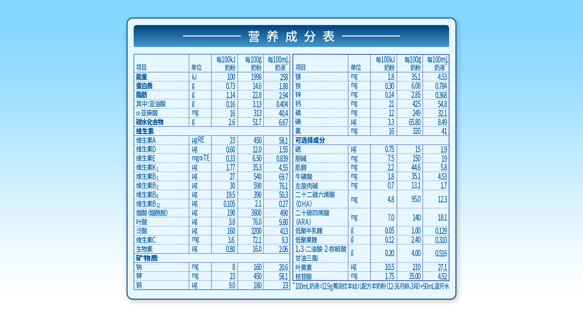 營(yíng)養(yǎng)成分表