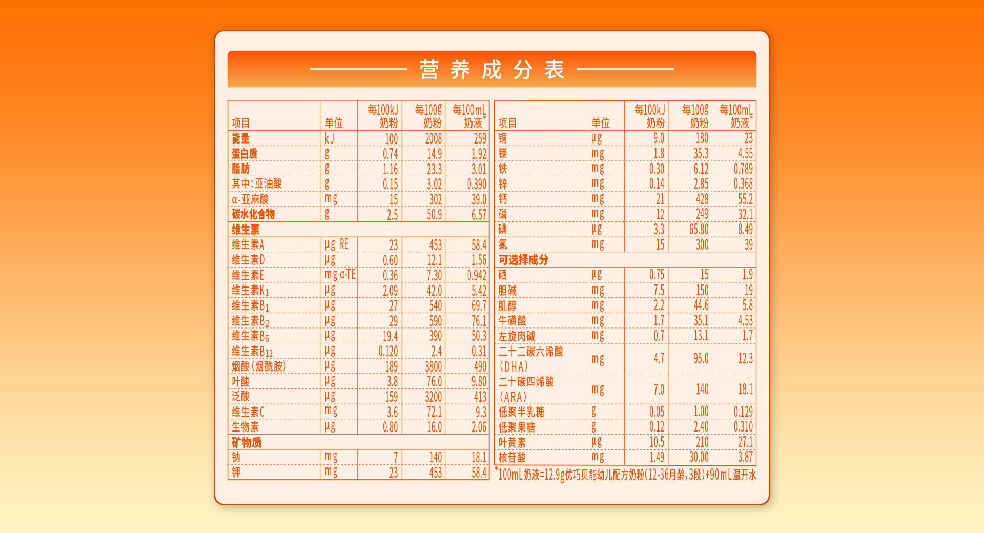營養(yǎng)成分表